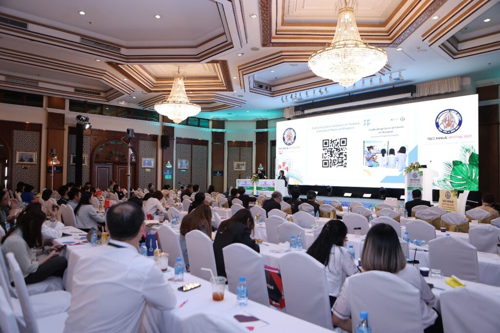 เครดิตภาพ TGCS: ช่วงการเปิดตัวรายงาน “Eradicating Cervical Cancer in Thailand: A Journey of Hope and Progress” (การกวาดล้างมะเร็งปากมดลูกในประเทศไทย: เส้นทางแห่งความหวังและความก้าวหน้า) ในการประชุมประจำปีของสมาคมมะเร็งนรีเวชไทย (TGCS) ณ จังหวัดชลบุรี เมื่อวันที่ 1 สิงหาคม 2568